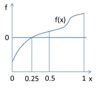 Inom matematiken är intervallhalvering ett enkelt sätt att hitta lösningen till till exempel en, möjligen olinjär, ekvation. Låt oss anta att vi vet att det finns en lösning till uttrycket f(x)=0 för x på intervallet 0 till 1. Och att f(0)<0 och f(1)>0 - eller möjligen tvärtom, det viktigaste är att funktionen f har olika tecken vid de två startgissningarna. Man kan, nämligen, då vara säker på att hitta en godtyckligt exakt lösning till f(x)=0 genom att låta nästa gissning av x vara mittpunkten av intervallet vi vet att lösningen finns på. Iallafall om f(x) är en tillräckligt snäll funktion. Låter vi x=0.5 i vårt exempel kan vi snabbt räkna ut f(0.5) och se om vår lösning finns till höger eller vänster om 0.5 på tallinjen. Och vips har vårt sökintervall blivit hälften så långt (antingen 0 till 0.5 eller 0.5 till 1 beroende på om f(0.5) är större eller mindre än 0), i nästa steg kan man göra intervallet hälften så långt igen. Och igen. Och igen. Tills man är nöjd med noggrannheten i sin bestämning. Det här är inte alltid en optimal sökstrategi, vi kastar ju bort en hel del information i utvärderingen av f genom att bara titta på vilket tecken funktionen har; om f(x) i vårt gissade värde är yttepyttelitet i jämförelse med värdena i intervallets senaste båda ändar kan man ju till exempel anta att lösningen ligger rätt nära den senaste gissningen - och då kunde man ju tänka sig att använda den informationen i sin nästa gissning på något listigt sätt. Men då heter det inte intervallhalvering längre.