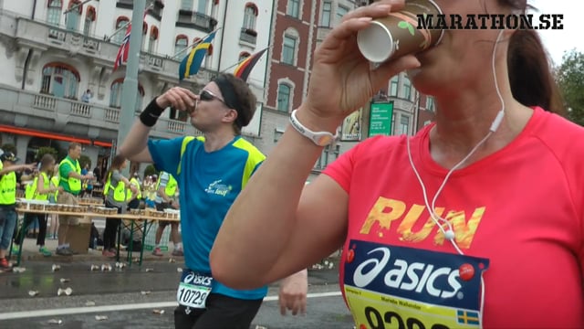 Vid löpning klarar kroppen att ta upp 0,5 – 1 liter per timme. Mer än så finns ingen anledning att dricka. I Stockholm Marathon serveras vid vätskekontrollerna bade vatten och sportdrycken Maxim Electrolyte som normalspädd har 0,9 procents saltinnehåll och som alltså ger en liten salttillförsel. Sportdrycken innehåller dessutom olika sockerarter som snabbt kan tas upp av kroppen.