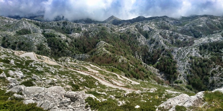 Ganska krånglig nedstigning i ett par hundra höjdmeter innan jag kommer ut på vägen lite nedanför och öster om den punkt jag hittade den på uppvägen. Nu väntar runt tre kilometer höglänt och slingrande asfaltväg bort mot toppen Vosac som tornar upp sig rakt ovanför Makar och Makarska byar. Det går fint att klämma upp farten på den snälla och mjukt slingrande asfalten. Det är några tunga uppförslöpor men generellt får jag lämna tillbaka ett par hundra höjdmeter i utbyte mot gott tempo i rätt låg ansträngning. Bra.