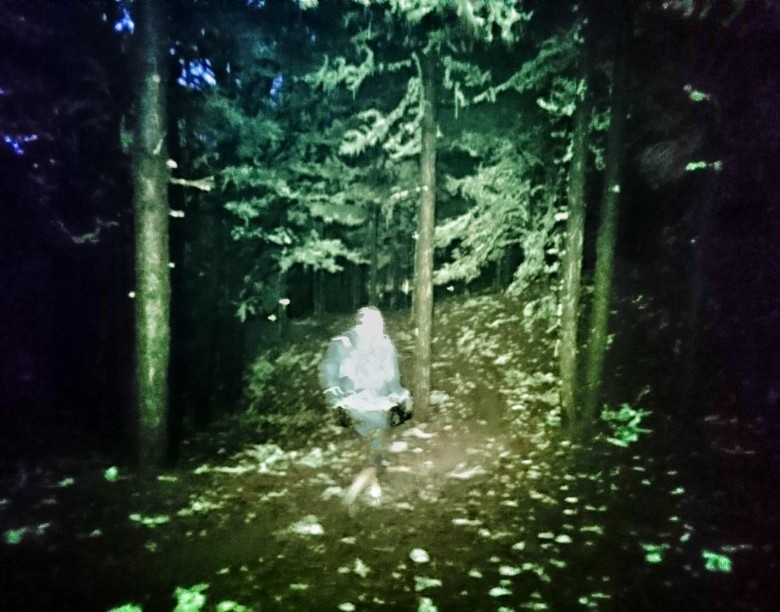 Spöklik känsla att springa längs kammar högt uppe i bergen med milsvid utsikt över byar långt bort, vid sidan om stigen försvinner marken, det är omöjligt att veta om det är en liten brant och en avsats eller ett tusenmetersstup - jag ser till att hålla koll på fötterna och stigen framför mig. Förutom ett par leriga och hala nedförslöp är underlaget ganska bra. En del sten, en del fin stig. Det blåser kallt om fingrarna på en del av topparna och jag ångrar att jag inte tog några tunna handskar - men annars är natten lugn. Vi trippar på och fältet glesas successivt ut och man får börja ta ansvar för navigerandet själv. En ambivalent hängd reflex och en saknad pil på en asfaltsbit leder till en kort fellöpning. Bannar mig själv och aktiverar ruttvisningen i klockan. De första gryningsstråken börjar synas på horistonten och tupparna börjar gala, löpning nedför i gles tallskog med moss-suddar på marken som är närmast självlysande i det tilltagande ljuset, mycket läckert. Och jag kan så äntligen släcka pannlampan vid sju - halv åtta på morgonen.