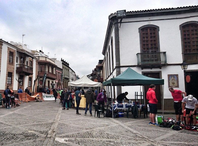 Byn Teror ligger vackert inbäddad i komplicerade dalgångsveck; vi springer igenom en marknad mitt i byn och sedan uppåt och vidare mot Cruz de Tejeda. Uppför går fortsatt lika bra, jag ligger kvar på samma 10-12 meter per minut och passerar många löpare. Som i sin tur passerar mig när det går nedför - jag börjar tappa tid i utförslöporna redan här och i Tejeda försöker jag åter oralinjicera alla sorters energiformer och salter för att om möjligt återfå lite stuns i benen. Det går sådär. Klockan rasslar på och vid den lilla kontrollen efter 71 km har jag börjat tappa tid mot repet. Fortfarande mer än en timmes marginal men det börjar minska. Fast efter kontrollen är det uppför mot Roque Nubolo och stigningar tar jag ju bra. Flacka partier kan jag hantera ok med hjälp av stavar och envishet men även det börjar gå långsammare.