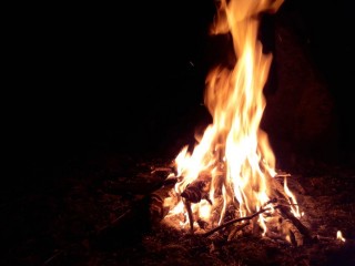 Sen sitter vi där, vid brasan vi samlat ved till. Blicken fastnar och tankarna glider iväg, samtalet också. Det är skönt när det blir mörkt och det inte går göra mycket annat än att sitta och titta in i brasan. Brasan är en speciell magnet som drar blicken till sig. När stjärnorna kryllar över himlen går vi och lägger oss. Det är tyst, det är skönt.
