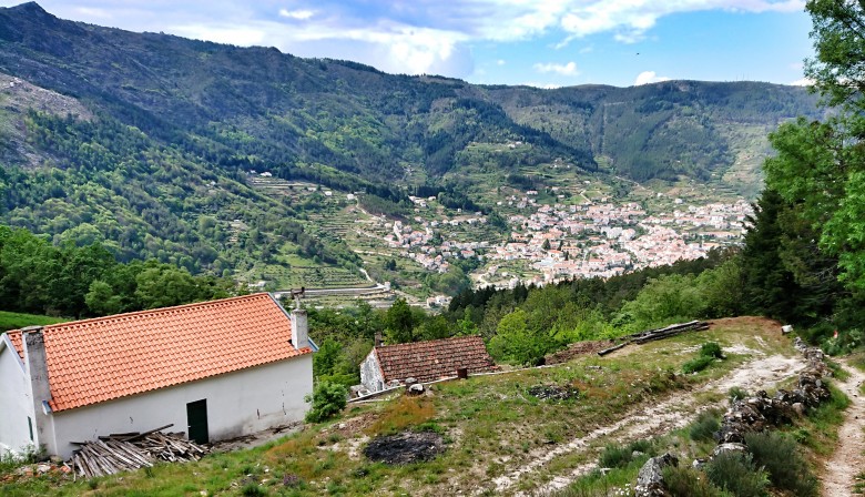 Uppstigningen på andra sidan är inte så lång i höjdmeter räknat men den känns som den aldrig tar slut. Terrängen är brötig och tungforcerad men jag håller ångan uppe helt ok. Laddar på med mitt hemliga förråd av smågodis i vätskevästen, de salta fiskarna hjälper mig den sista biten upp till det sista krönet. Härifrån är det bara lättlöpt stig och kullersten nedför till Manteigas. Grymt härligt när stigen ringlar runt ett hörn och man ser byn glittra vitt långt nere i dalen. Kollar jag noga ser jag kyrkan där målet ligger och man kan på vissa platser höra speakern långt långt här uppe. Ändå har jag 4 kilometer till mål.