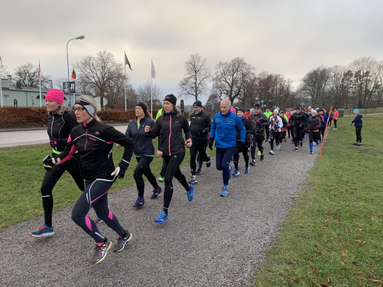 På söndagsträningarna kör vi i vanliga fall långpass. Men idag började vi istället med att testa tempot på några olika pass som kommer att återkomma i träningsprogrammet. Vi började med uppvärmning i vårt lugna lånpasstempo 2,5 km. Från GIH och ner mot Sjöhistoriska. Efter lite rörlighet och löpskolning under ledning av Anders Szalkai, blev det trösketempo 2x5 minuter. Efter det en lång intervall - 1000 meter och sedan två medellånga intervaller och två korta.