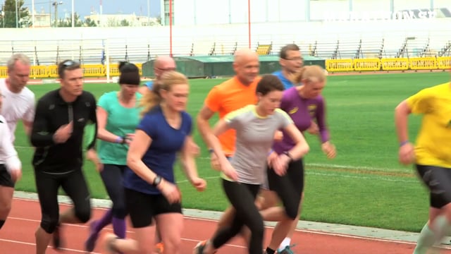 Intervallerna ska helst köras på plant fint underlag, men några mjuka mindre skiftningar i nivåskillnaden på marken är ok på sträckan. Har ni en löparbana i närheten kan ni köra där.